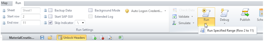 The Run Option from a Transaction script is Run Specified Range (Row __ to __), as in the screenshot below.