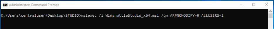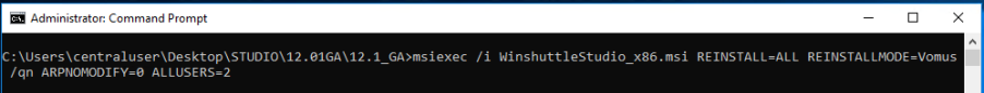 msiexec /i WinshuttleStudio_x86.msi REINSTALL=ALL REINSTALLMODE=Vomus /qn ARPNOMODIFY=0 ALLUSERS=2