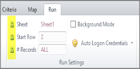 To lock the specified Sheet, Start Row, or # Records setting so that it cannot be changed by a runner, click the padlock icon that is to the left.