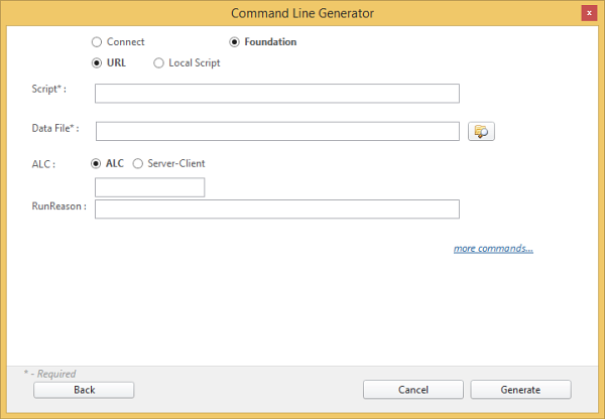 In Foundation mode, click URL and enter the path to the script on the Foundation site, or click Local Script, click the Browse button, navigate to the script, and click Open.