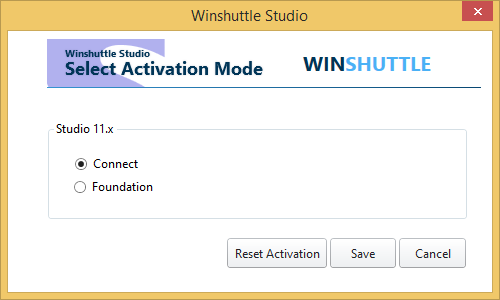 If Studio does not recognize the Connect password or the Foundation website address and you are unable to log on, you can click Reset Activation, and it will prompt you to select the mode from Studio and provide a different password or a new website address.