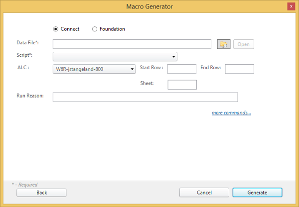 Command line code and macro code is complex and hard to prepare. This tool uses the run settings that you enter to automatically generate command line and macro code that you can copy and run on the command line or paste into an Excel macro.