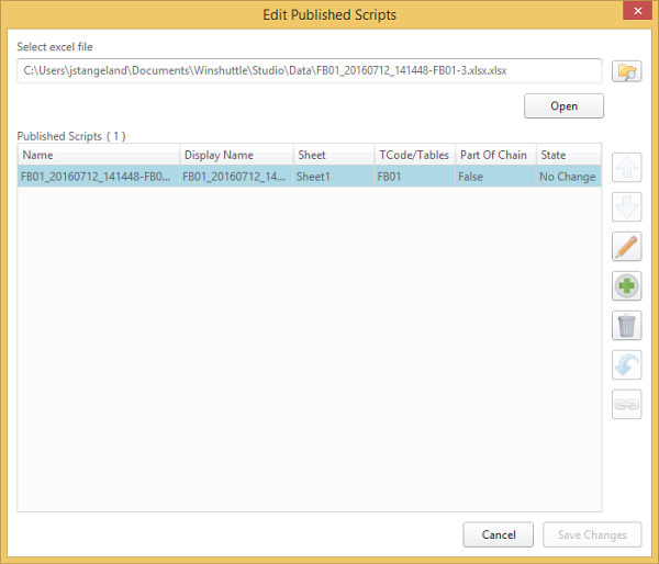 - Only linked scripts can be opened. If you select an unlinked script, an error message will appear.