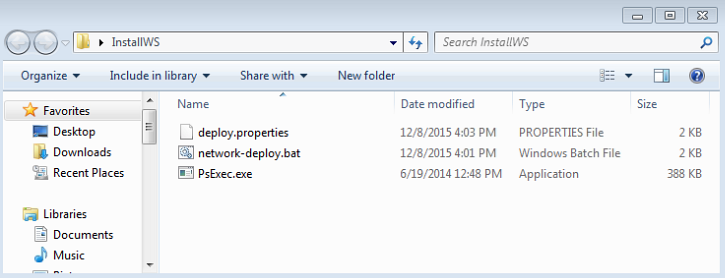 Network deployment using PSExec tool requires the following files: