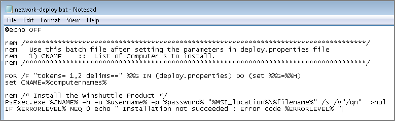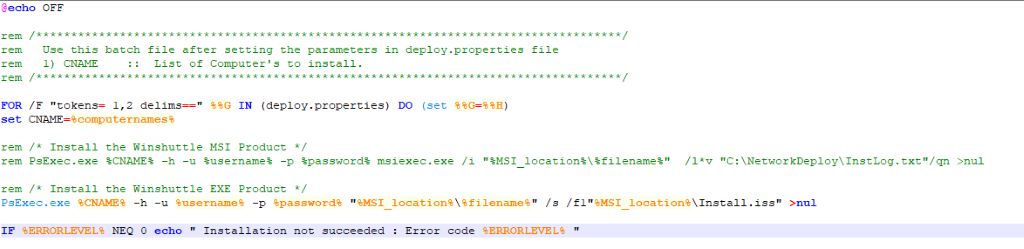 The batch file reads the deploy.properties values and installs the product using the PsExec tool.