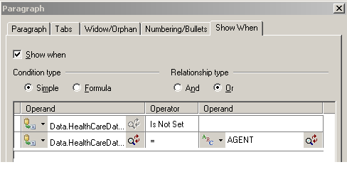 Select the Show when option to make the paragraph content conditional.