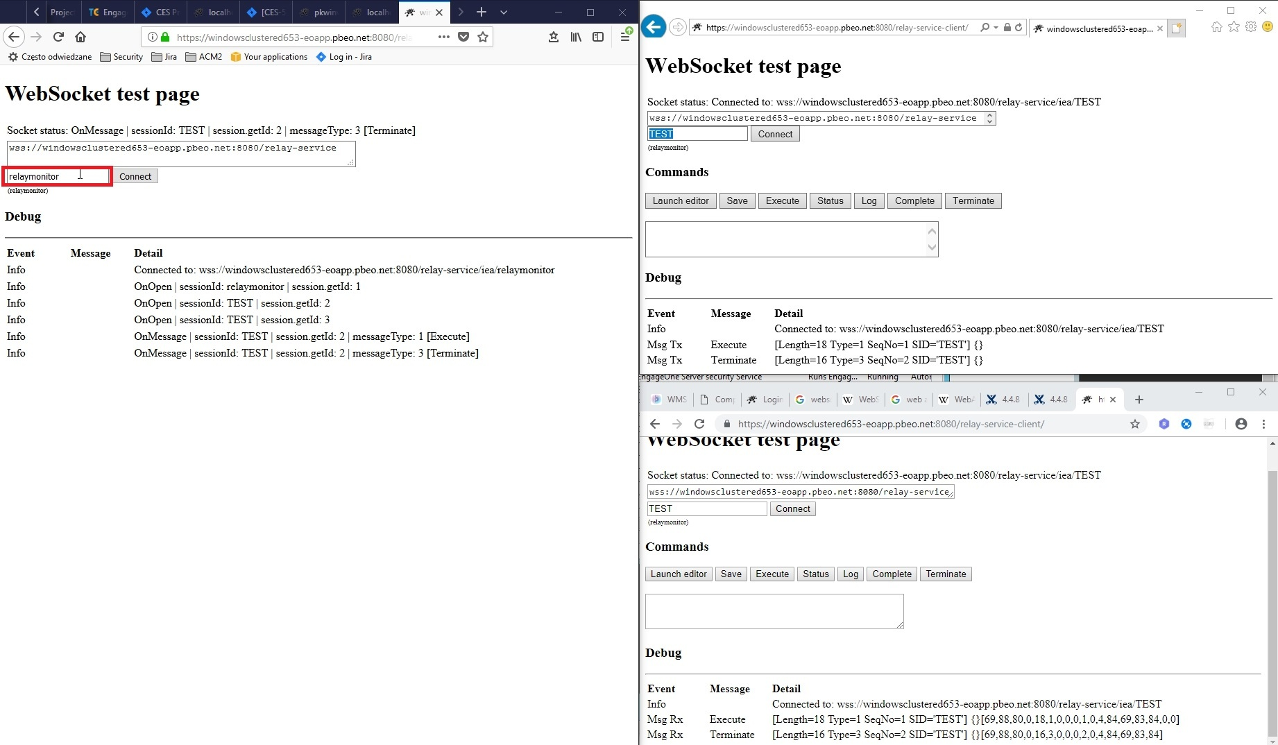 At this point the relay-service-client should present all websocket traffic on the specific node.