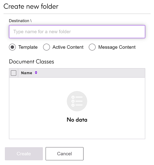 folder sub-levels, including templates, Active Content, and Message Content. Specifying