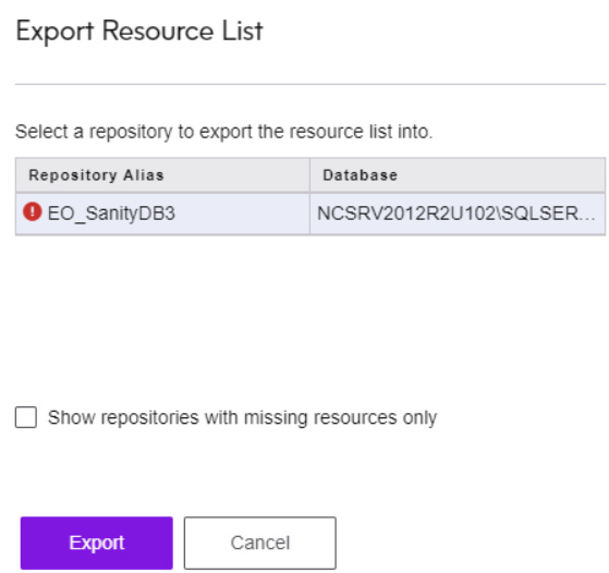 - To generate a resource list or resolve missing resources, click Export Resources.