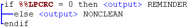 Visual Engineer helps you maintain your IF, THEN, ELSE language structures by displaying connectors in the form of a bar down the left side of the window (as shown below). You can also locate the next or previous IF level with the Find IF feature. For instructions on turning IF level connectors on and off, see Setting Environment Preferences.