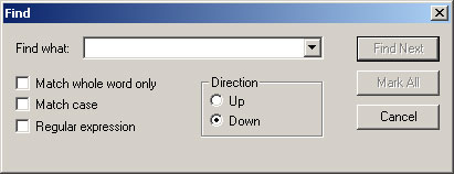 - Down: Select this option to search from the current cursor position to the bottom of the file.