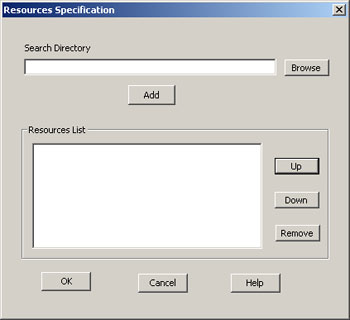 - Up: Moves the selected resource up in the order of precedence. The resources listed in the Resources List field are searched in the order shown.