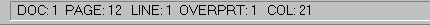 When your cursor is on an open line printer data, DJDE, AFP line data, or AFP mixed-mode print stream, the status bar displays the document, page, line, overprint record, and column number of the cursor position, as shown below.