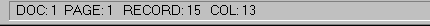 When your cursor is on an open Metacode, PCL, PostScript, or AFPDS print stream, the status bar displays the document, page, record, and column of the cursor position, as follows: