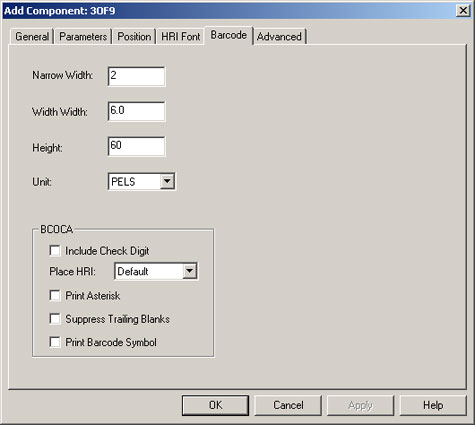 - Print Asterisk: Specifies whether or not the HRI should include the asterisk on both ends for 3OF9.