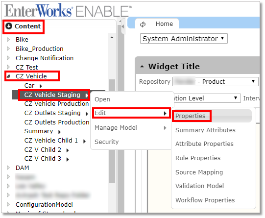 Open the CZ Vehicle Staging Repository's Properties for Editing