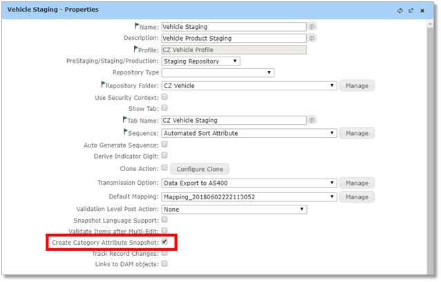 Set the Repository's Create Category Attribute Snapshot Flag