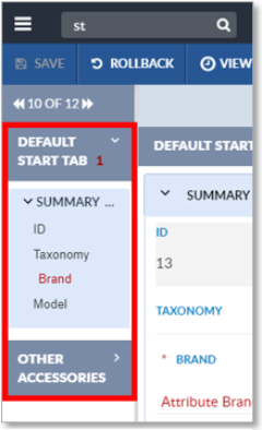 Clicking an Attribute Tab’s name expands it to display the Attribute Groups it contains. It also causes the Edit Attribute pane to display the tab’s Attribute Groups, expanded. Clicking an Attribute Group’s name in the Attribute List will cause the Edit Attribute pane to scroll to the Attribute Group. The user may also scroll through the list of attributes by using the scroll slider on the right of the Edit Attribute pane.