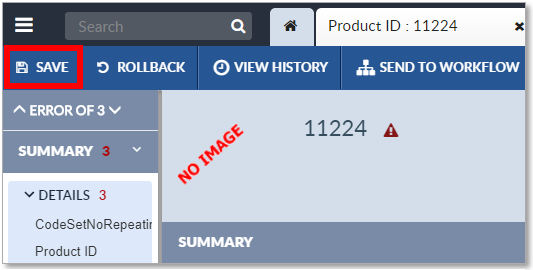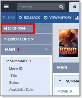 Note that records can be saved with errors. The level of each error and their effect on the record’s validation status is discussed in more detail in Record Validation. When a record with errors or warnings is saved, a warning message appears at the bottom of the Detail Editor.