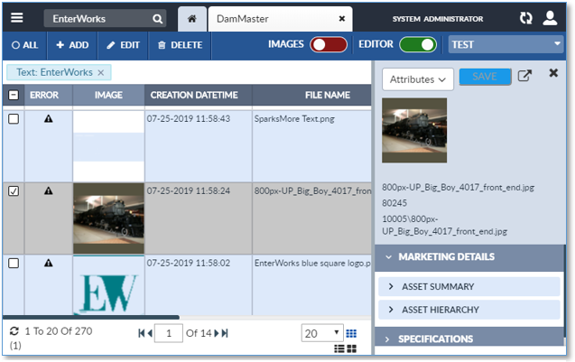 Attribute values may be edited by clicking their attribute field. Different attribute data types determine how each attribute will be edited. For instance, clicking a DATE field will allow the user to edit the text of the field or to select a date from a pop-up calendar.