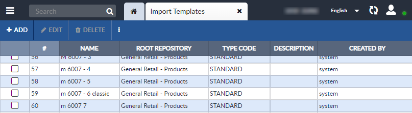 To do so, open the Feature Sidebar, open the Administration folder, open the Templates folder, and select Import Template. The list of import templates will be displayed in an Import Template tab.