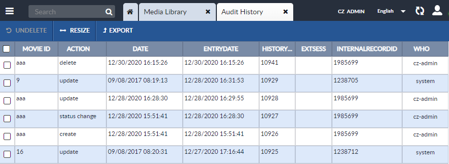 - Select the audit records you would like to export and click the Export button on the Audit History's Activity Bar.
