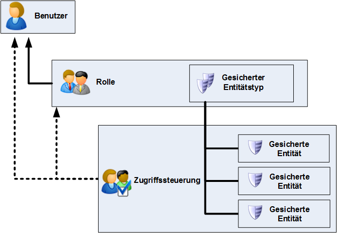 Eine Rolle gewährt Berechtigungen für gesicherte Entitätstypen. Ein gesicherter Entitätstyp stellt eine Kategorie von Elementen dar, für die der Zugriff gewährt oder verweigert werden soll. Es gibt beispielsweise den gesicherten Entitätstyp „Datenflüsse“, der die Standardberechtigungen für alle Datenflüsse auf dem System steuert.