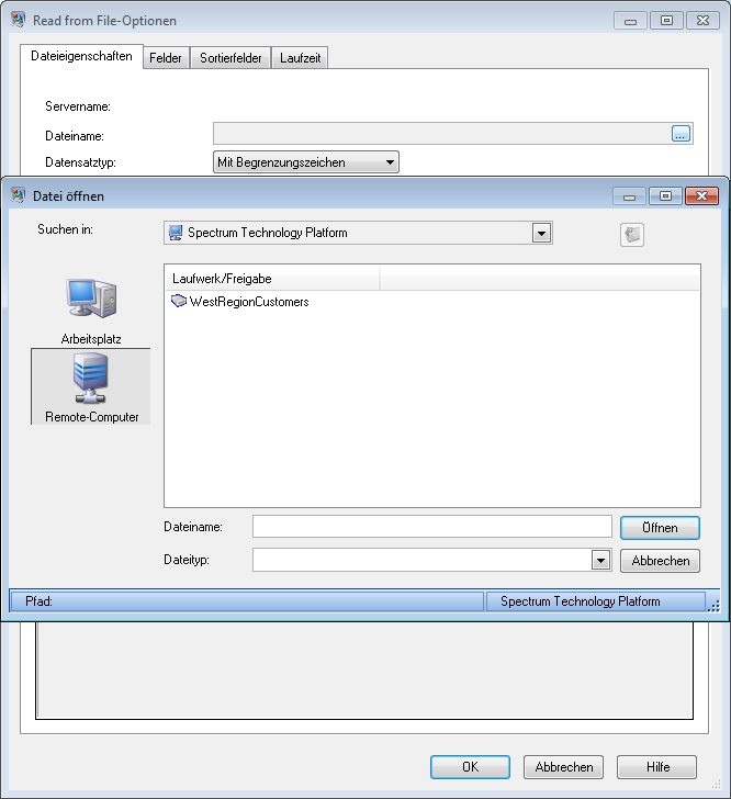 Wenn Benutzer Aufgaben ausführen, für die sie eine Datei auswählen müssen, können sie die Ordner des Spectrum™ Technology Platform-Servers durchsuchen. So können Benutzer beispielsweise den Server durchsuchen, wenn sie eine Eingabe- oder Ausgabedatei in einem Quell- oder Datenladungsschritt im Enterprise Designer auswählen. Als Administrator möchten Sie eventuell den Zugriff beschränken, sodass empfindliche Teile des Servers nicht durchsucht oder geändert werden können.