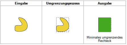 | Feld „Geometrie“ (unter „Eingabefeld“) | Das Eingabefeld, das die Geometrie enthält, die von einem minimal umgebenden Rechteck umschlossen werden soll. In diesem Feld werden auch Geometrien akzeptiert, die von Schritten im Enterprise Routing-Modul generiert wurden, wie z. B. „LineString“ oder „Polygon“. |
