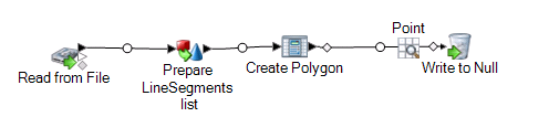 Im Transformer-Schritt werden Feldwerte und Formatierung geändert. In dieser Prozedur wird beschrieben, wie eine benutzerdefinierte Transformation zur Erstellung eines LineSegment-Feldes erstellt wird. Ein LineSegment-Feld wird anschließend als Eingabe für einen Vorgang zum Erstellen einer Polygongeometrie mit dem Spatial Calculator verwendet.