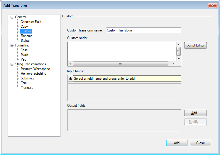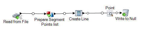 Im Transformer-Schritt werden Feldwerte und Formatierung geändert. In dieser Prozedur wird beschrieben, wie eine benutzerdefinierte Transformation zur Erstellung einer Segmentpunktliste erstellt wird. Die Segmentpunktliste wird dann als Eingabe für einen Vorgang zum Erstellen einer Liniengeometrie mit dem Spatial Calculator verwendet.