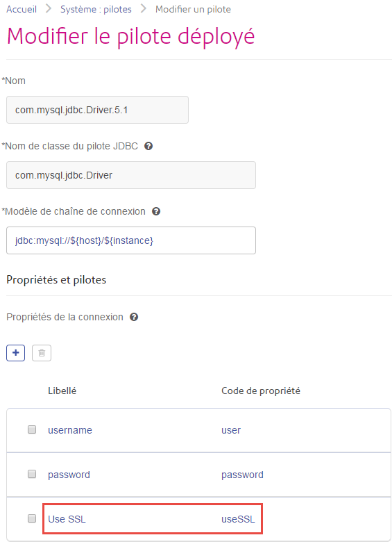Dans cette procédure, vous allez ajouter des fichiers de pilote JDBC sur le serveur, puis définir manuellement la chaîne de connexion et les propriétés de connexion. Avant de commencer, assurez-vous que vous comprenez le format et les propriétés de la chaîne de connexion requis par le pilote. Pour que le pilote puisse fonctionner, vous devez les définir correctement dans l'ordre. Vous pouvez généralement trouver les informations sur la chaîne de connexion et les propriétés d'un pilote sur le site Web du fournisseur du pilote.
