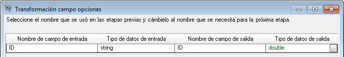 - La Transformación Campo entre las etapas Read from File y Math cambia el formato del campo ID de string a double, porque la etapa Math no admite datos en cadena.