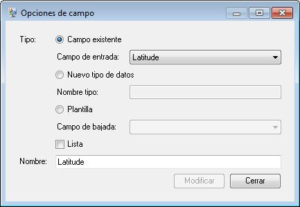 - Haga doble clic en Listas de salida. Aparece el cuadro de diálogo Opciones de campo.