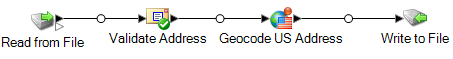 - Después de que tenga los datos de muestra y haya instalado los recursos de bases de datos más recientes, cree un flujo de datos simple que lea datos de un archivo, los procese con la etapa que desea optimizar y los escriba en un archivo. Por ejemplo, si desea probar la configuración de rendimiento para Validate Address, cree un flujo de datos que conste de Read from File, Validate Address y Write to File.