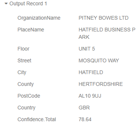 Input string"Pitney Bowes Ltd Unit 5 Hatfield Business Park Mosquito Way Hatfield Hertfordshire AL10 9UJ GBR"
