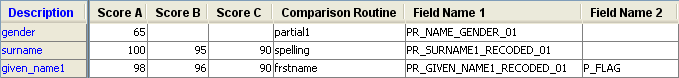 If the Relationship Linker/Reference Matcher is comparing two records that both have PR_GIVEN_NAME1_RECODED_01 ="John " (and consequently P_FLAG="0") the comparison score will be 100 which will convert to a grade "A" and then to a grade 'M.'