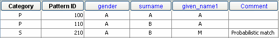 Next time you run the Relationship Linker, some of the records that used to hit the pattern P110 are now hitting the pattern S210 because a grade "A" is now converted to an "M" when the P_FLAG attribute contains the probabilistic flag (0).