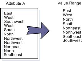 A value range identifies those values which belong to a group of accepted values for an attribute. For example, a value range for the attribute Teenager would be a numeric value within the value range of 13 to 19. Value ranges can also be designated sets of values; for example, the days of the week, months, and date and time formats.